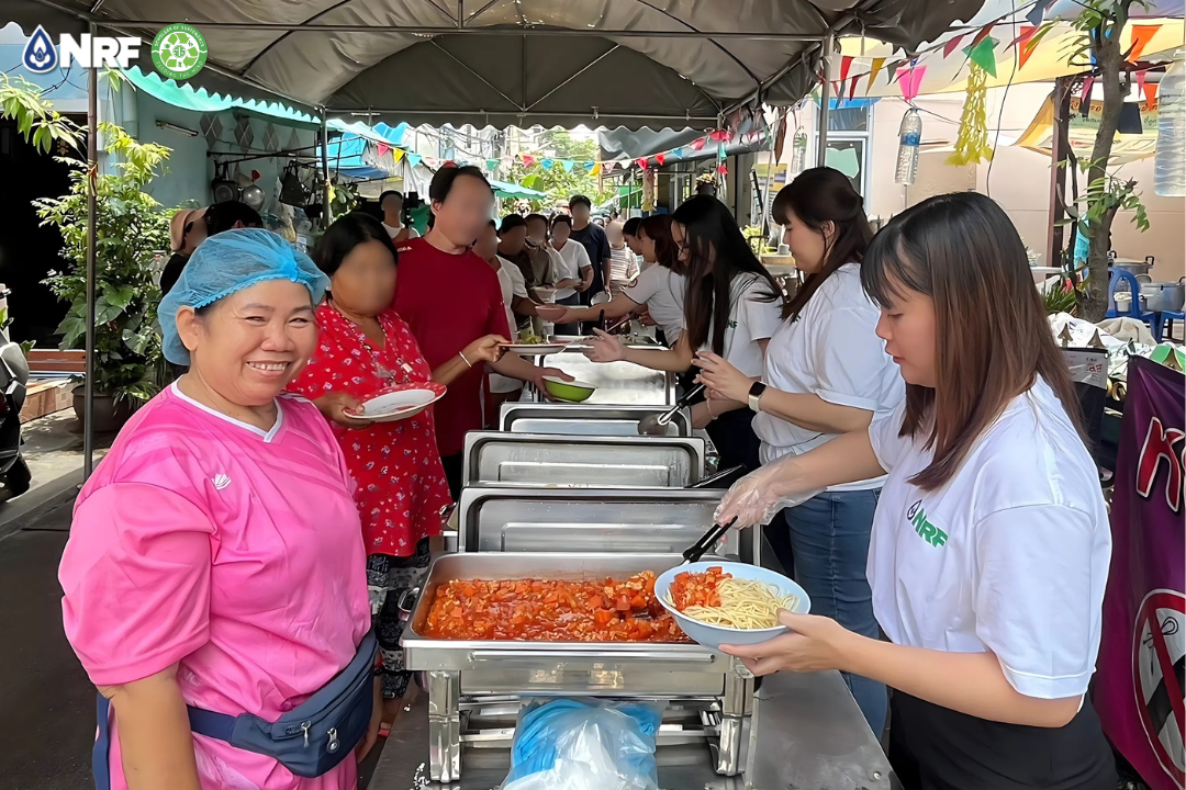 บรรยากาศภายในงานเต็มไปด้วยความคึกคักและอบอุ่น ตั้งแต่ช่วงเช้าที่ทีมงาน NRF และอาสาสมัครช่วยกันล้าง เตรียม และปรุงอาหารอย่างพิถีพิถัน เพื่อให้มั่นใจว่าอาหารที่จัดส่งถึงมือชุมชนจะมีทั้งคุณภาพ ความสะอาด และความปลอดภัย ขณะเดียวกัน ชาวชุมชนก็มารวมตัวกันเพื่อรับอาหารท่ามกลางรอยยิ้มและเสียงหัวเราะ โดยเฉพาะเด็ก ๆ ที่ได้มื้อกลางวันแสนอร่อย ซึ่งกลายเป็นหนึ่งในภาพความประทับใจของกิจกรรมในครั้งนี้