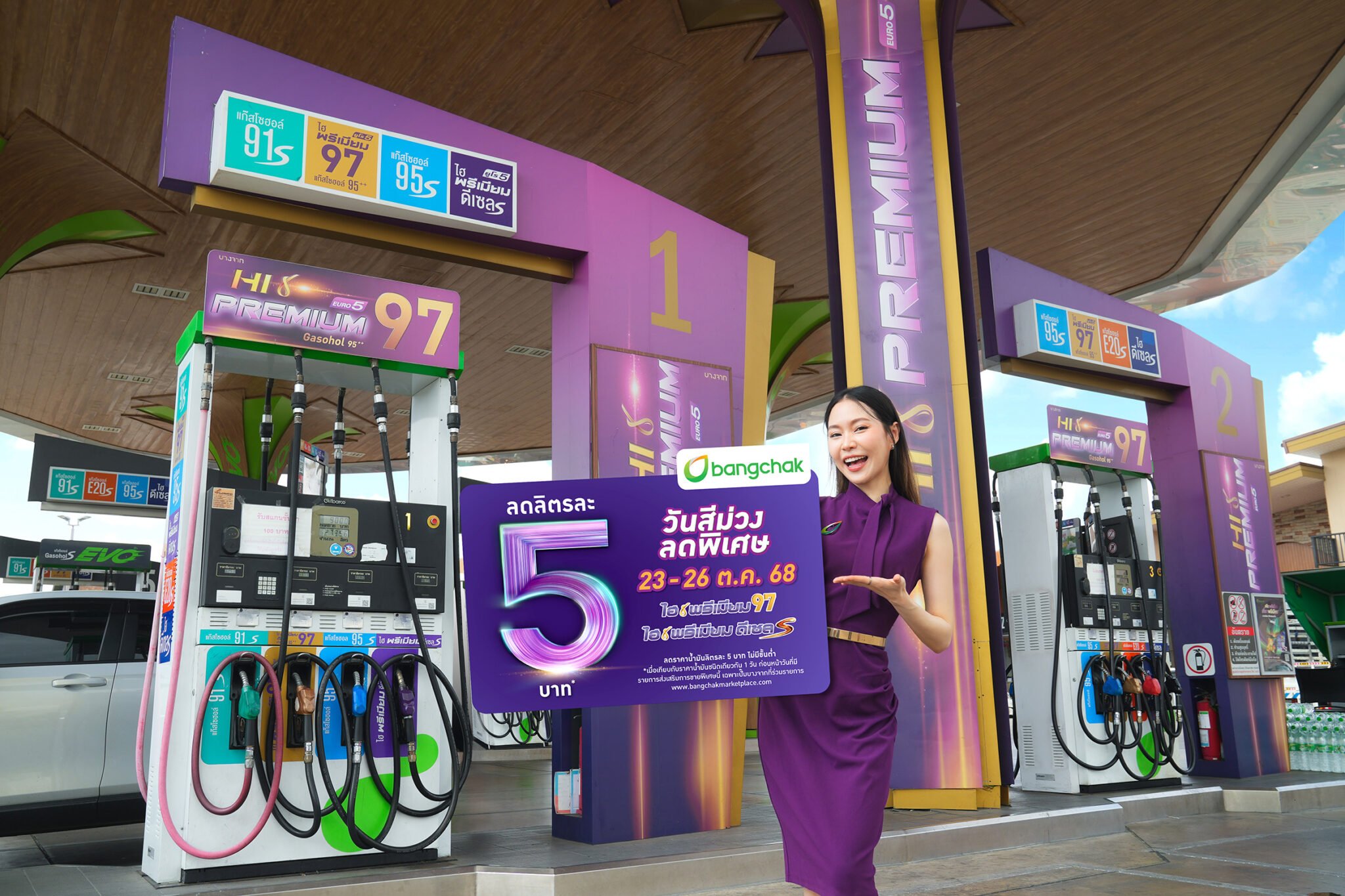 บริษัท บางจาก คอร์ปอเรชั่น จำกัด (มหาชน) จัดโปรโมชันแรงรับวันหยุดยาว ลดราคาเฉพาะน้ำมันกลุ่มไฮพรีเมียม ลิตรละ 5 บาท ไม่มีขั้นต่ำ ทั้งไฮพรีเมียม 97 และไฮพรีเมียมดีเซล S ระหว่างวันที่ 23-26 ตุลาคม 2568 ที่สถานีบริการน้ำมันบางจากทั่วประเทศที่จำหน่าย เพื่อให้ผู้ใช้รถได้ทดลองใช้น้ำมันคุณภาพสูงจากบางจาก ที่จะช่วยเพิ่มสมรรถนะของเครื่องยนต์ให้เต็มประสิทธิภาพ สะอาด แรง ปกป้องเครื่องยนต์ 100% ขับขี่ได้มั่นใจ ทุกเส้นทาง ดูรายละเอียดเพิ่มเติมได้ที่ www.bangchakmarketplace.com