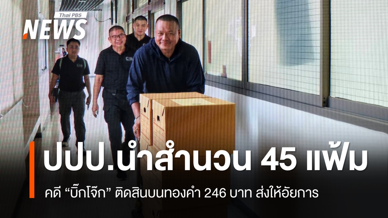 ตำรวจ ปปป.นำสำนวนคดีสินบนทองคำ 246 บาท ที่มีการกล่าวหา "บิ๊กโจ๊ก" กับพวก จำนวน 45 แฟ้ม ส่งให้พนักงานอัยการพิจารณาสั่งฟ้องแล้ว ขณะที่ อธิบดีอัยการสำนักงานคดีปราบปรามการทุจริต เตรียมตั้งคณะทำงานเพื่อตรวจพิจารณาสำนวนวันนี้ (8 เม.ย.2569) พนักงานสอบสวน กองบังคับการป้องกันปราบปรามการทุจริตและประพฤติมิชอบ (บก.ปปป.) นำสำนวนการสอบสวนคดีสินบนทองคำ 246 บาท ที่มีมากถึง 45 แฟ้ม บรรจุอยู่ในกล่องกระดาษ 23 กล่อง ส่งมอบให้พนักงานอัยการพิจารณาสั่งฟ้อง