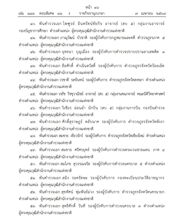 ราชกิจจานุเบกษา เผยแพร่ประกาศสํานักนายกรัฐมนตรี เรื่อง แต่งตั้งข้าราชการตํารวจ ให้ดํารงตําแหน่งต่างๆ จํานวน 60 นายวันนี้ (7 เม.ย.2569) เว็บไซต์ราชกิจจานุเบกษา ได้เผยแพร่ประกาศสํานักนายกรัฐมนตรี เรื่อง แต่งตั้งข้าราชการตํารวจ ความว่า