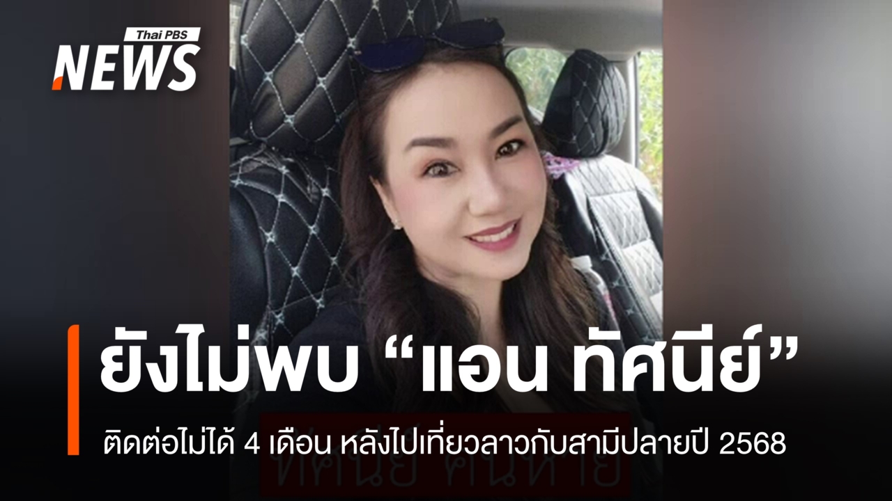 ญาติติดตามหา "ทัศนีย์" หญิงไทยชาว จ.เพชรบูรณ์ ที่ขาดการติดต่อหลังเดินทางไปเที่ยวลาวพร้อมสามีเมื่อปลายปี 2568 ขณะที่สามีเดินทางกลับไทยเพียงลำพังและปฏิเสธการให้ข้อมูล ก่อนเดินทางกลับสหรัฐฯ ทันทีวันนี้ (22 เม.ย.2569) ผู้สื่อข่าวรายงานว่า ครอบครัวยังคงติดตามหา น.ส.ทัศนีย์ หรือ แอน ที่หายตัวไปนานเกือบ 4 เดือน ซึ่งความเคลื่อนไหวสุดท้ายจาก น.ส.ทัศนีย์ คือการโพสต์ในโซเชียลมีเดีย เมื่อวันที่ 30 ธ.ค.2568 สถานที่คือ วังเวียง สถานที่ท่องเที่ยวชื่อดังของประเทศลาว