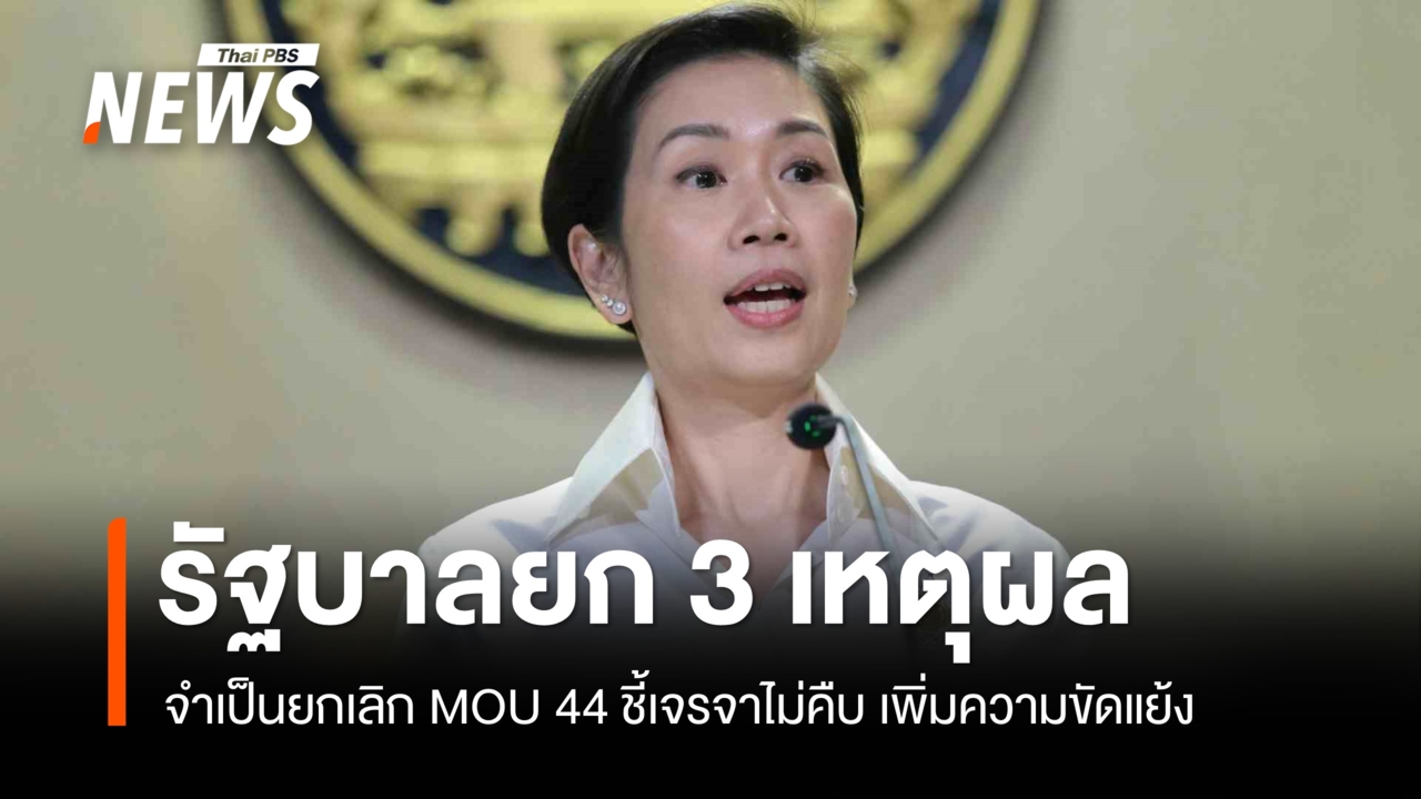 โฆษกรัฐบาล ยก 3 เหตุผล ยกเลิก MOU 2544 มองผ่านมา 25 ปี เจรจาเพียง 5 ครั้ง ไม่เป็นผล นำไปสู่ข้อพิพาทเขตแดนทางทะเล จี้ กัมพูชา แสดงเจตนารมณ์ให้ชัด วางกรอบเจรจาใหม่ บริหารทรัพยากรใต้ทะเลร่วมกันวันนี้ (23 เม.ย.2569) น.ส.รัชดา ธนาดิเรก โฆษกประจำสำนักนายกรัฐมนตรี เปิดเผยว่า วันนี้ ที่ประชุมสภาความมั่นคงแห่งชาติ (สมช.) ครั้งที่ 2/2569 ได้มีมติ ยกเลิก MOU 44 ตามนโยบายรัฐบาล ด้วยเหตุผล