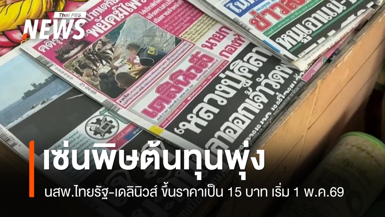 1 พ.ค.นี้ หนังสือพิมพ์ไทยรัฐ เดลินิวส์ เตรียมปรับขึ้นราคา สะท้อนต้นทุนเพิ่มขึ้น ท่ามกลางวิกฤตสื่อสิ่งพิมพ์ที่พฤติกรรมผู้บริโภคที่หันไปเสพข่าวออนไลน์ ทำให้ยอดขายลดลง แผงหนังสือทยอยปิด ผู้ประกอบการต้องเร่งปรับตัววันนี้ (23 เม.ย.2569) หนังสือพิมพ์รายวันระดับยักษ์ใหญ่ 2 ฉบับ คือ "ไทยรัฐ" และ "เดลินิวส์" ประกาศปรับราคาจำหน่ายปลีกจากฉบับละ 10 บาท เพิ่มขึ้นเป็น 15 บาท มีผลตั้งแต่วันที่ 1 พ.ค.นี้ เป็นต้นไป