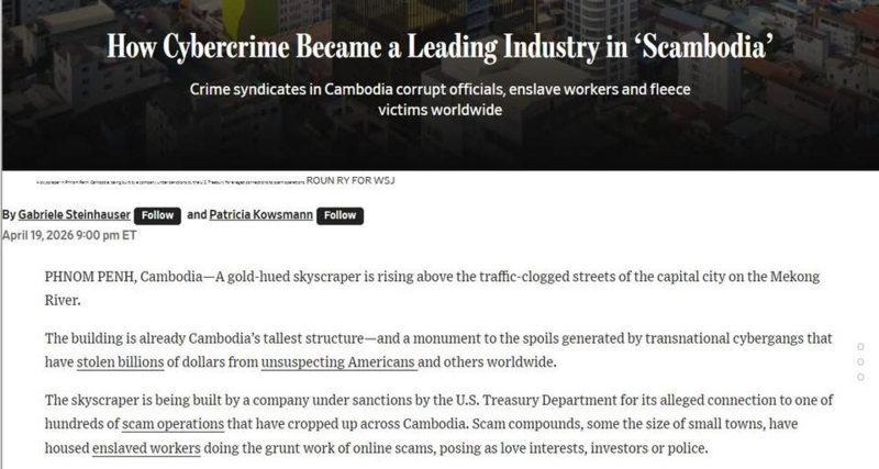 ชาวกัมพูชาไม่ทน! ซัด WSJ เป็นสื่อไร้ความรับผิดชอบ หลังเรียกกัมพูชาว่า Scambodia ชี้เป็นการเหยียดเชื้อชาติอย่างรุนแรง ทวงถามหาจรรยาบรรณสื่อ อยากให้รายงานข้อเท็จจริง ไม่ใช่เน้นการล้อเลียนชื่อประเทศอื่นเมื่อวันที่ 21 เม.ย.2569 Khmer Times รายงาน เกิดกระแสวิพากษ์วิจารณ์อย่างรุนแรงต่อสำนักข่าวระดับโลกอย่าง The Wall Street Journal (WSJ) ที่ใช้ลูกเล่นทางภาษาเรียกประเทศกัมพูชาว่า "Scambodia" ซึ่งเป็นการผสมคำว่า Scam (ต้มตุ๋น) เข้ากับชื่อประเทศ Cambodia การกระทำครั้งนี้ไม่ได้ถูกมองว่าเป็นความฉลาดทางภาษา แต่คือการด้อยค่าและเหยียดเชื้อชาติชาวกัมพูชาอย่างจัง