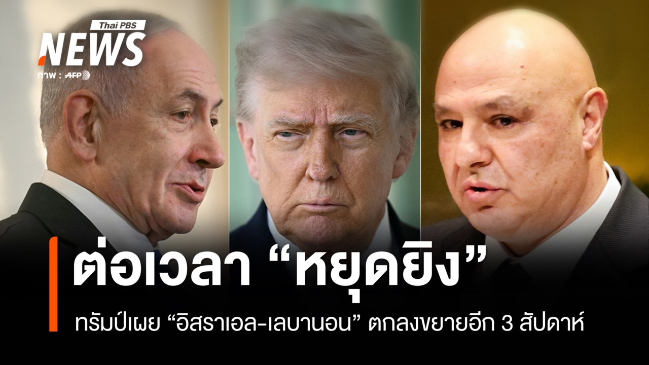 ผู้นำสหรัฐฯ ประกาศว่า "อิสราเอล-เลบานอน" ตกลงขยายเวลาหยุดยิงต่ออีก 3 สัปดาห์ หลังการหยุดยิงรอบแรก 10 วันจะสิ้นสุดในวันที่ 26 เม.ย.นี้เมื่อวันที่ 23 เม.ย.2569 โดนัลด์ ทรัมป์ ประธานาธิบดีสหรัฐอเมริกา ประกาศที่ทำเนียบขาวว่า ประเทศอิสราเอล และเลบานอนตกลงขยายการหยุดยิงออกไปอีก 3 สัปดาห์ ซึ่งเดิมข้อตกลงหยุดยิงชั่วคราวระหว่าง 2 ประเทศจะหมดอายุในวันที่ 26 เม.ย.นี้