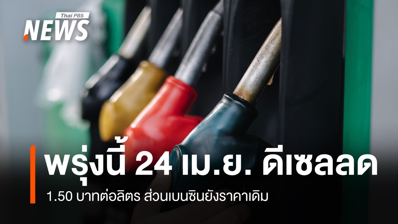 พรุ่งนี้ 24 เม.ย. ดีเซลลดราคา 1.50 บาทต่อลิตร ส่วนเบนซินยังราคาเดิม